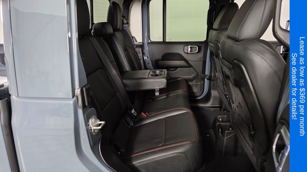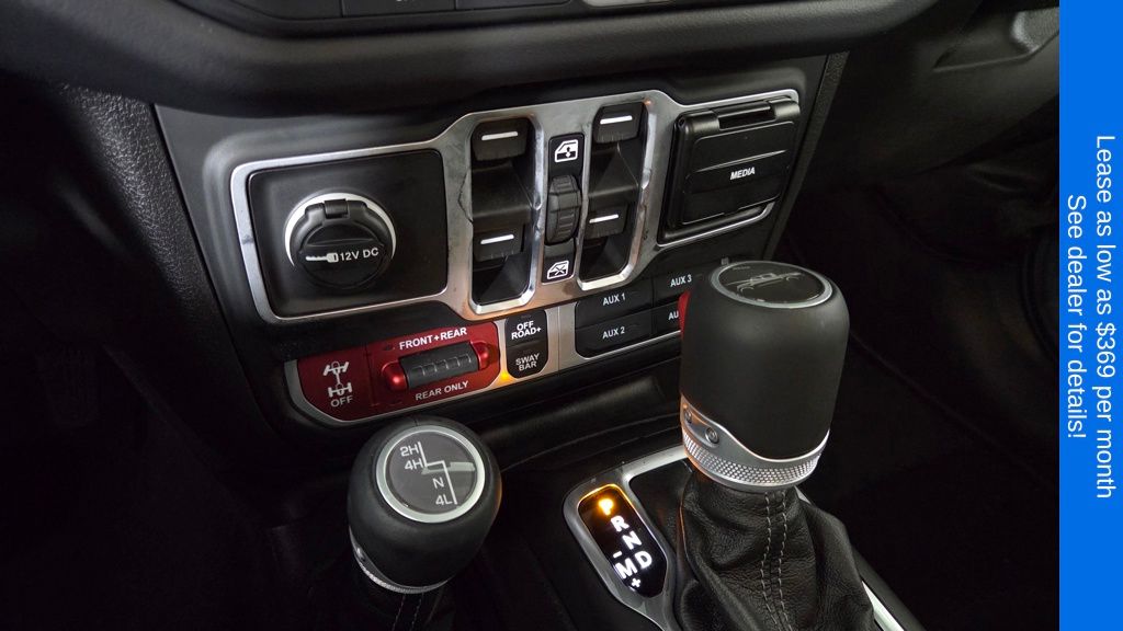 Inside, the Gladiator Rubicon offers a spacious and well-appointed cabin, with comfortable cloth low-back bucket seats, a split-folding rear seat, and a host of advanced technology features. Stay connected with the Uconnect 5 system and its 12.3" display, seamlessly integrating your smartphone via Apple CarPlay and Android Auto. The Freedom Panel Storage Bag and Rear Sliding Window add versatility, allowing you to customize your driving experience.