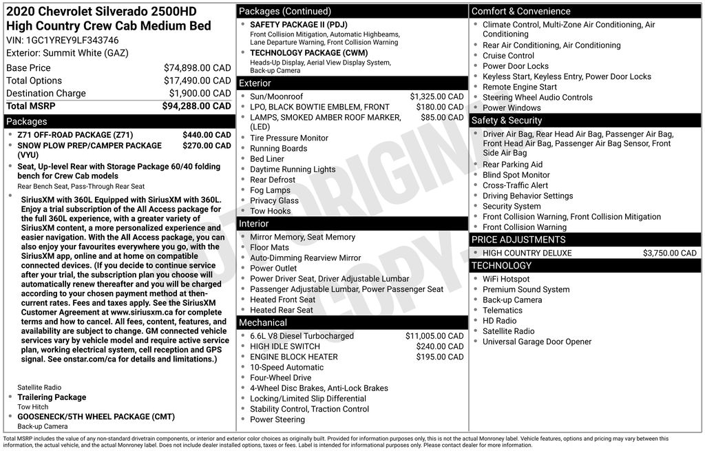 Recent Arrival! Silverado 2500HD High Country Summit White Priced below KBB Fair Purchase Price! Duramax 6.6L V8 Turbodiesel Silverado 2500HD High Country, 4D Crew Cab, Duramax 6.6L V8 Turbodiesel, 10-Speed Automatic, 4WD, Summit White, Jet Black/Umber Leather, 10-Way Power Driver Seat Adjuster w/Lumbar, 10-Way Power Passenger Seat Adjuster w/Lumbar, 12-Volt Rear Auxiliary Power Outlet, 120-Volt Bed Mounted Power Outlet, 120-Volt Instrument Panel Power Outlet, 170 Amp Alternator, 4G LTE Wi-Fi Hotspot Capable, 6" Rectangular Chromed Tubular Assist Steps, 8" Diagonal Multicolor Digital Display DIC, Advanced Trailering System, Air Conditioning, Auto-Dimming Inside Rear-View Mirror, Automatic temperature control, Black Chevytec Spray-On Bedliner w/Chevrolet Logo, Bluetooth® For Phone, Chevrolet Connected Access Capable, Chrome Front Grille, Chrome Mirror Caps, Chrome Recovery Hooks, Color-Keyed Carpeting Floor Covering, Compass, Deep-Tinted Glass, Driver Memory, Dual Charge-Only USB Ports (2nd Row), Electric Rear-Window Defogger, Electrical Lock Control Steering Column, Electronic Cruise Control w/Set & Resume Speed, Floor-Mounted Center Console, Front Carpeted Floor Mats, Front LED Fog Lamps, Gooseneck/5th Wheel Package, Gooseneck/5th Wheel Prep Package, HD Radio, HD Rear Vision Camera, Heated & Auto-Dim Pwr Vertical Trailering Mirrors, Heated 2nd Row Outboard Seats, Heated Driver & Front Outboard Passenger Seating, Heated Steering Wheel, High Country Deluxe, Hill Descent Control, Hitch Guidance w/Hitch View, Integrated Trailer Brake Controller, Keyless Open & Start, Lane Change Alert w/Side Blind Zone Alert, Leather-Wrapped Steering Wheel, LED Cargo Area Lighting, Manual Tilt & Telescoping Steering Column, Off-Road Suspension, OnStar & Chevrolet Connected Services Capable, Polished Exhaust Tip, Power Door Locks, Power Front Windows w/Driver Express Up/Down, Power Front Windows w/Passenger Express Up/Down, Power Rear Windows w/Express Down, Power Sliding Rear Window w/Defogger, Preferred Equipment Group 3LZ, Rear Carpeted Floor Mats, Rear Cross Traffic Alert, Rear Wheelhouse Liners, Remote Vehicle Starter System, Safety Package II, SiriusXM w/360L, Snow Plow Prep/Camper Package, Steering Wheel Audio Controls, Suspension Package, Technology Package, Ultrasonic Front & Rear Park Assist, Unauthorized Entry Theft-Deterrent System, Universal Home Remote, Up-Level Rear Seat w/Storage Package, Ventilated Driver & Front Passenger Seats, Wheels: 20" 16-Spoke Polished Aluminum, Wireless Charging, Z71 Off-Road Package.