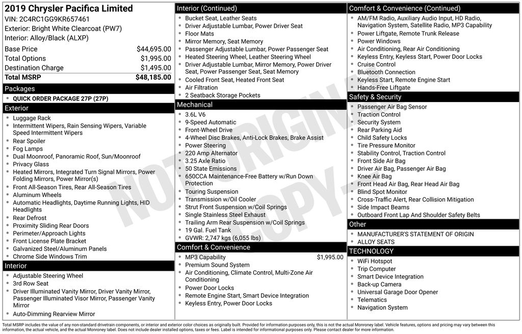 2019 Chrysler Pacifica Limited