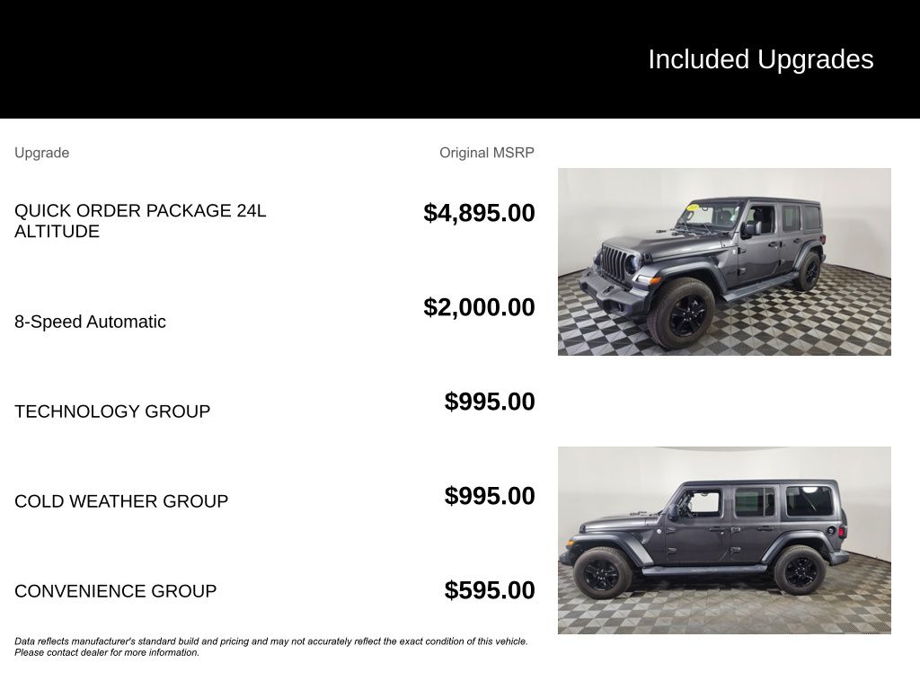 Key features of this Wrangler Unlimited Sport Altitude include: