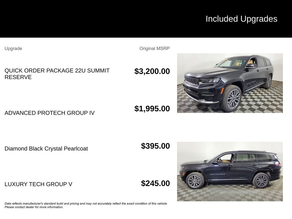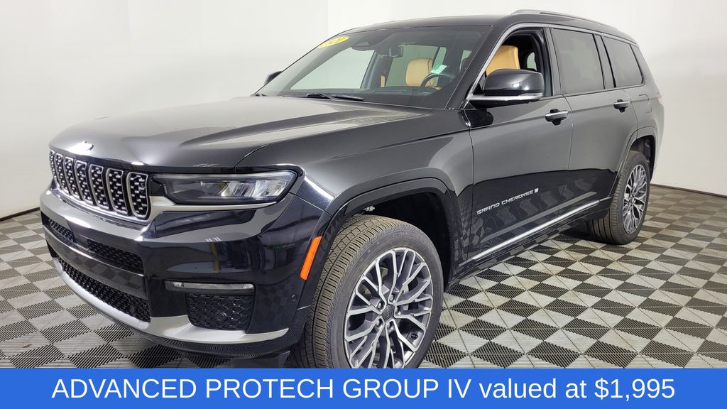 Grand Cherokee L Summit Diamond Black Crystal Pearlcoat Odometer is 11531 miles below market average! 3.6L V6 24V VVT Grand Cherokee L Summit, 4D Sport Utility, 3.6L V6 24V VVT, 8-Speed Automatic, 4WD, Diamond Black Crystal Pearlcoat, Tupelo/Black Leather, 19 Speakers High Performance Audio, 2nd Row Manual Window Shades, 7 & 4 Pin Wiring Harness, 950 Watt Amplifier, Active Noise Control System, Adaptive suspension, Advanced Protech Group IV, Apple CarPlay/Android Auto, Auto High-beam Headlights, Auto-leveling suspension, Automatic temperature control, Brake assist, Class IV Receiver Hitch, Delay-off headlights, Deluxe Headliner, Electronic Stability Control, Front fog lights, Fully automatic headlights, Heads-Up Display, Heated front seats, Heated rear seats, Interior Rear Facing Camera, Luxury Tech Group V, Navigation System, Night Vision/Pedestrian-Animal Detection, Palermo Leather Door Trim, Palermo Leather Seats, Power driver seat, Power Liftgate, Power moonroof: CommandView, Power steering, Quick Order Package 22U Summit Reserve, Rain sensing wipers, Rearview Autodim Digital Display Mirror, Summit Reserve, Summit Reserve Badge, Telescoping steering wheel, Tilt steering wheel, Trailer Hitch Zoom, Trailer Tow Package, Two Tone Paint Group, Variably intermittent wipers, Ventilated Rear Seats, Wheels: 21" x 9.0" Machined Face/Painted Aluminum, Wireless Charging Pad.