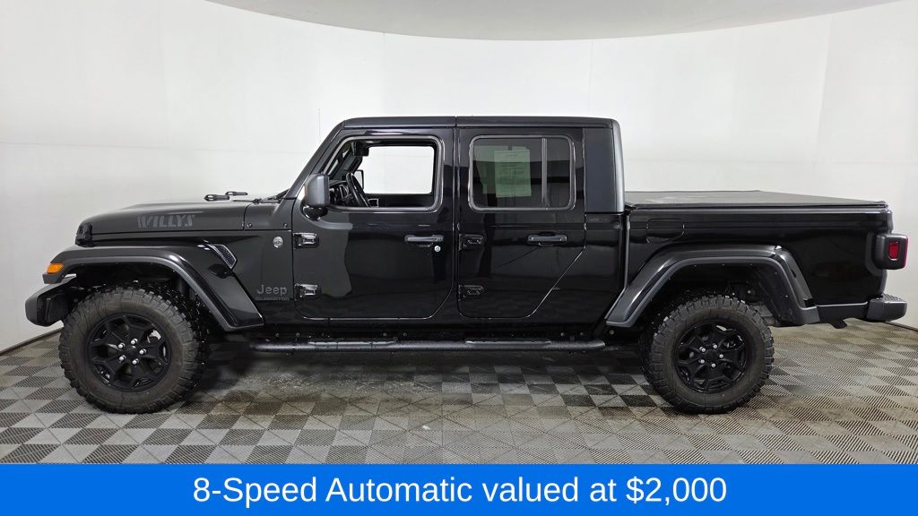 Gladiator Willys Black Clearcoat Odometer is 23394 miles below market average! 3.6L V6 24V VVT Gladiator Willys, 4D Crew Cab, 3.6L V6 24V VVT, 8-Speed Automatic, 4WD, Black Clearcoat, Black Cloth, 1-Year SiriusXM Guardian Trial, 110 MPH Vehicle Max Speed Calibration, 115V Auxiliary Power Outlet, 2-Door Passive Entry, Front Door Locks, 240 Amp Alternator, 4-Wheel Drive Decal, 400W Inverter, 5-Year SiriusXM Traffic Service, 5-Year SiriusXM Travel Link Service, 8.4" Radio & Premium Audio Group, 8.4" Touchscreen Display, 97 MPH Vehicle Max Speed Calibration, Air Conditioning w/Auto Temperature Control, Alpine Premium Audio System, Anti-Spin Differential Rear Axle, Apple CarPlay, Apple CarPlay/Android Auto, Auto-Dimming Rear-View Mirror, Automatic Headlamps, Black 3-Piece Hard Top, Black Grille, Body Color Fender Flares (2-Piece), Bridgestone Brand Tires, Class IV Receiver Hitch, Cluster 7.0" TFT Color Display, Cold Weather Group, Console Bin Task Light, Convenience Group, Corning Gorilla Glass, Daytime Running Lamp System, Daytime Running Lamps LED Accents, Deep Tint Sunscreen Windows, Emergency/Assistance Call, For Details, Visit DriveUconnect.com, For More Info, Call 800-643-2112, Freedom Panel Storage Bag, Front 1-Touch Down Power Windows, Front Heavy Duty Red Accent Shock Absorbers, Front LED Fog Lamps, Google Android Auto, GPS Navigation, HD Radio, Heated Front Seats, Heated Steering Wheel, Heavy-Duty Engine Cooling, Integrated Center Stack Radio, Integrated Voice Command w/Bluetooth, Leather Wrapped Steering Wheel, LED Headlamp & Fog Lamp Group, LED Premium Reflector Headlamps, Media Hub w/2 Charge Only USBs, Mold In Color Bumper w/Gloss Black, MOPAR All-Weather Slush Mats, Off-Road Info Pages, ParkView Rear Back-Up Camera, Power Heated Mirrors, Power Tailgate Lock, Protection Sill Rails, Quick Order Package 24W Willys, Radio: Uconnect 4C Nav w/8.4" Display, Rear Heavy Duty Red Accent Shock Absorbers, Rear Sliding Window, Rear Window Defroster, Remote Keyless Entry, Security Alarm, SiriusXM Satellite Radio, SiriusXM Traffic Plus, SiriusXM Travel Link, Speed Sensitive Power Locks, Sun Visors w/Illuminated Vanity Mirrors, Technology Group, Trailer Hitch Zoom, Trailer Tow Package, Universal Garage Door Opener, USB Host Flip, Wheels: 17" x 7.5" Black Aluminum w/Gray Pad, Willys, Willys Hood Decal.