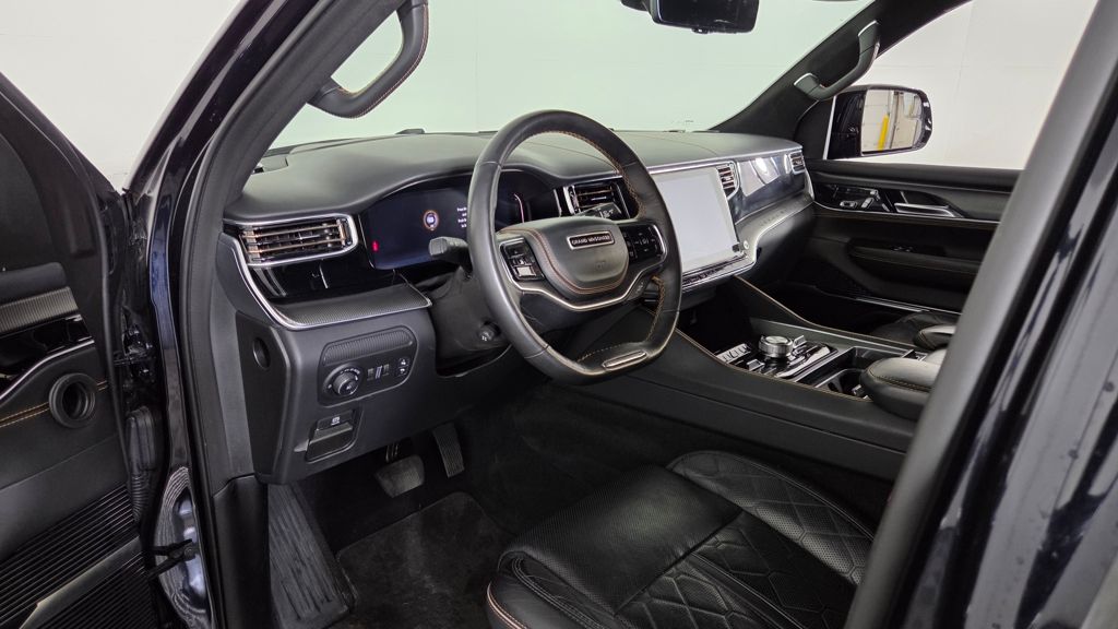 Powered by a robust 3.0L I6 Hurricane HO Twin Turbo engine mated to an 8-speed automatic transmission, this Grand Wagoneer L delivers exceptional performance and efficiency. With 4-wheel drive capabilities and a towing capacity that exceeds 10,000 pounds, it's a true master of both on-road refinement and off-road prowess.